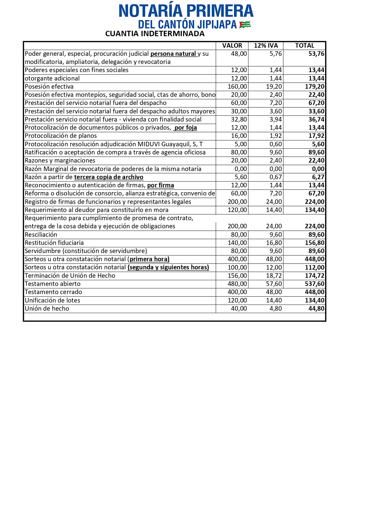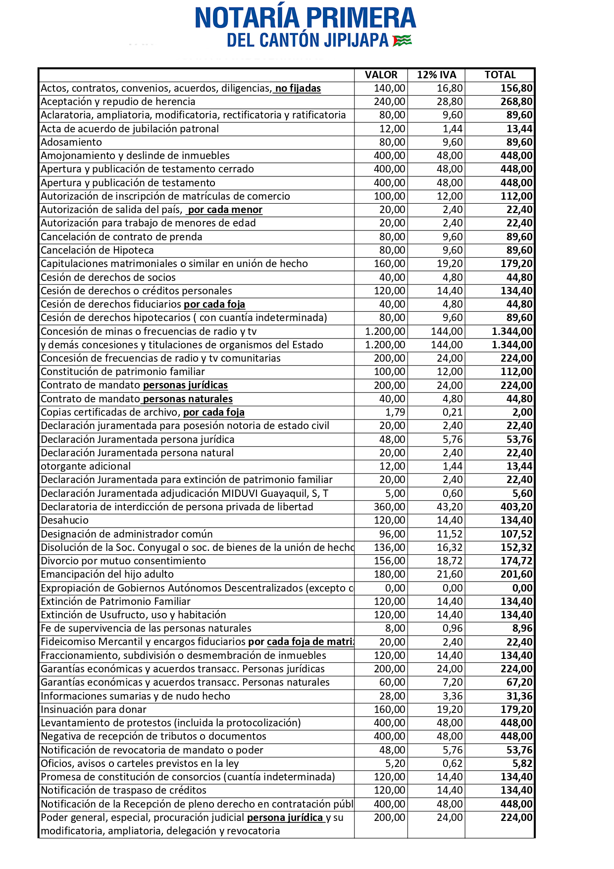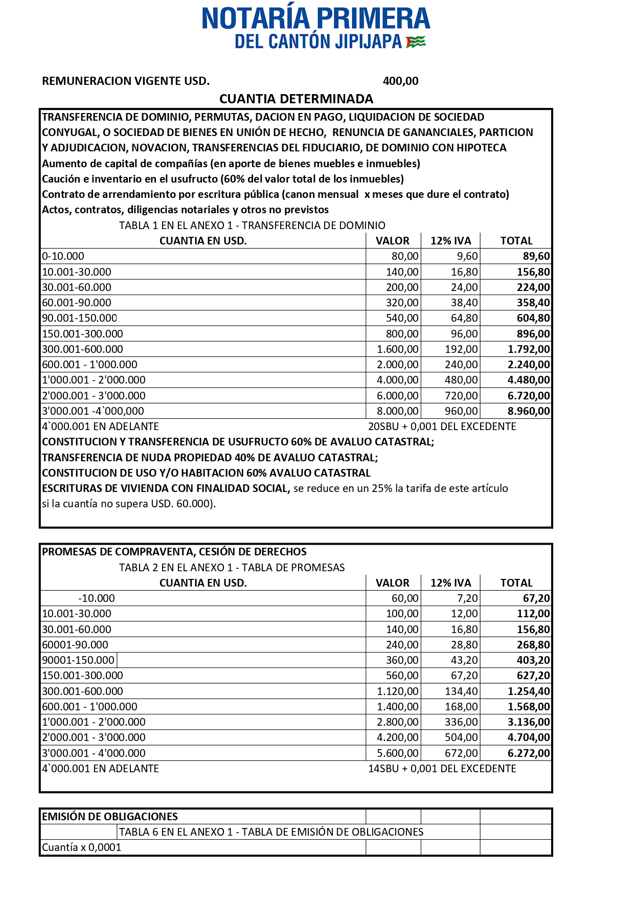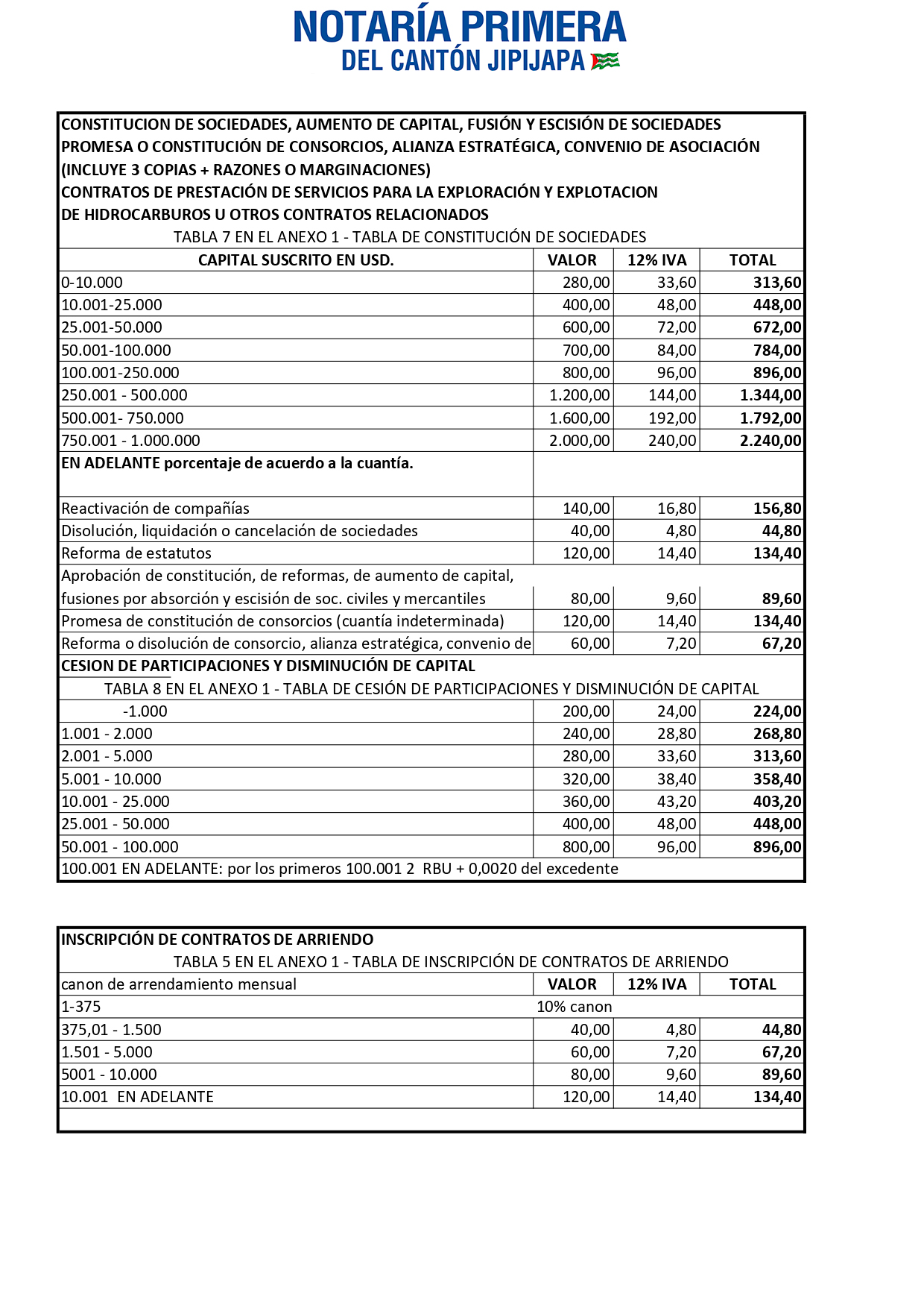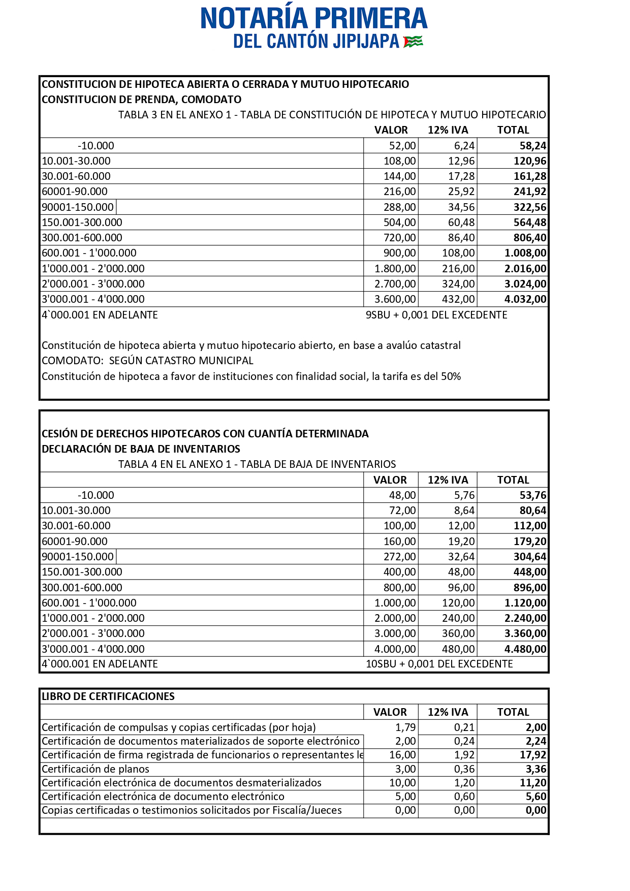Tasas por Servicios Notariales